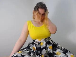 Attraktive Blondine strippt und masturbiert vor der Kamera